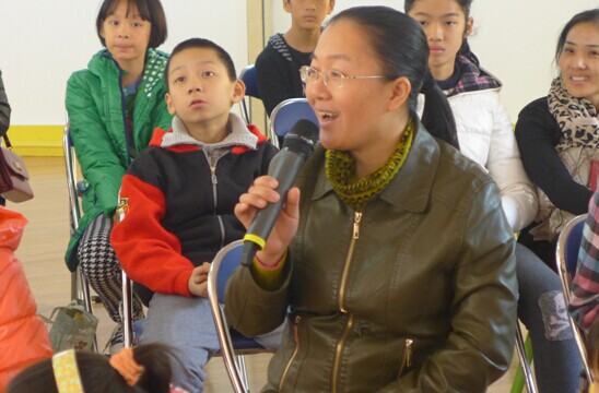 图为家长朋友参与互动并鼓励在座小朋友好好学习