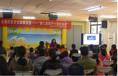 2014年12月,我馆开展了主题为“守望美好童年 阅读引领成长”全民阅读月活动。为了更好的营造阅读氛围,结合北海的历史文化知识普及,我馆于12月20日在多功能报告厅举办了“普仁医院护士的故事”——北海历史文化故事讲座。