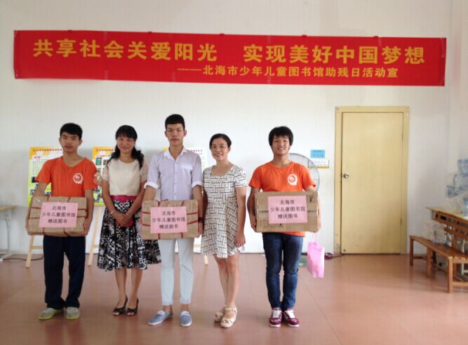 今年是第25个全国助残日,我馆坚持深入一线,走进特殊群体,于5月15日上午到北海市特殊学校举行献爱心活动。当天,特殊学校举办了首届主题为“飞扬自信,秀出自我”的艺术节活动,内容有文艺汇演、手工作品展、图片展等,此次活动我馆捐赠图书200册,玩具50份,价值共2800元。我们通过献爱心活动传递正能量,进一步弘扬中华民族扶弱助残的传统美德,逐步形成全社会都来理解、关心、帮助残疾人的良好氛围,营造扶残助残的社会风尚;增强残疾人自尊、自信、自立、自强的信念,促进特教事业持续、健康发展,让这些特殊孩子感受到社会的温暖。