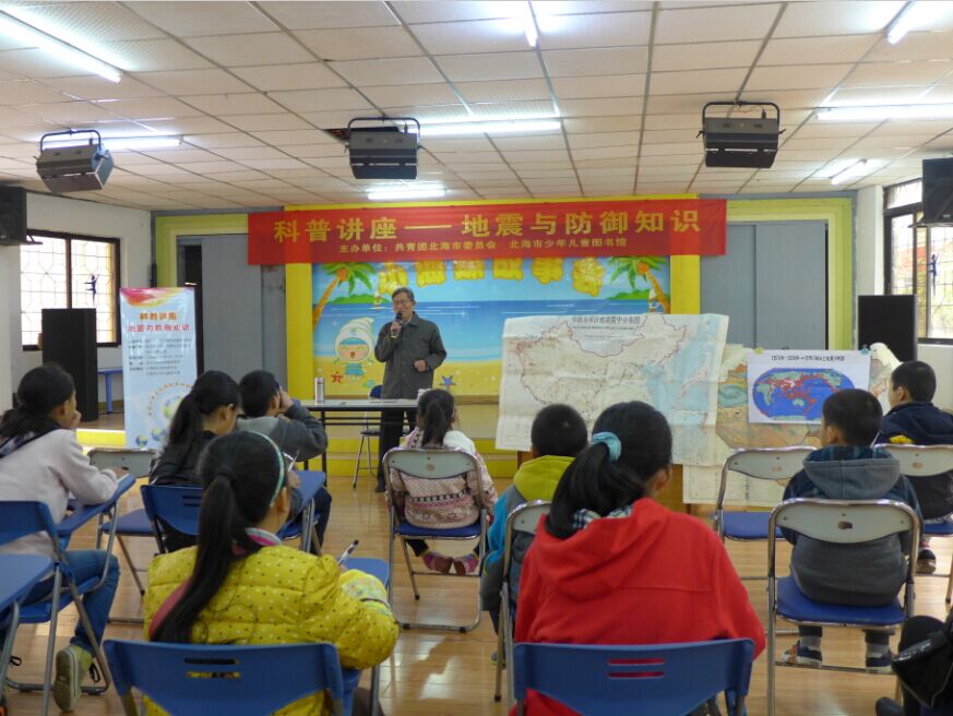 原北海市地震局专家黄庭光老师在馆多功能报告厅作了一场关于地震与防御知识的科普讲座