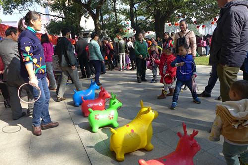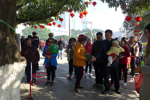 炮竹声声迎新岁,新年到,金猴闹! 2月8日早上,北海市少年儿童图书馆在北部湾广场举行大型“新春乐”益智游园活动,以传统游园猜谜语、蒙眼击鼓、抛圈圈、定点投篮等活动方式与全市小朋友们一起分享春节的喜悦,并在活动点附近悬挂“北海海上丝绸之路申报世界文化遗产”和“社会主义核心价值观”图片展供市民阅读。丰富多彩的益智游园活动吸引了很多市民,大家争先恐后,积极踊跃参与,气氛热烈,笑声不断。参加游园活动的市民共有2000多人,游园活动受到了市民的热烈欢迎,营造了欢快祥和的新春文化氛围。