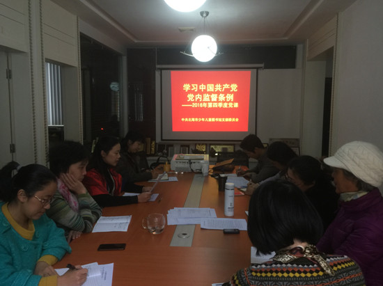 12月16日下午,北海市少年儿童图书馆党支部开展了《深入学习贯彻党的十八届六中全会精神》第四季度的党课学习暨支部书记专项述职民主评议,全体在职党员参加了此次会议。