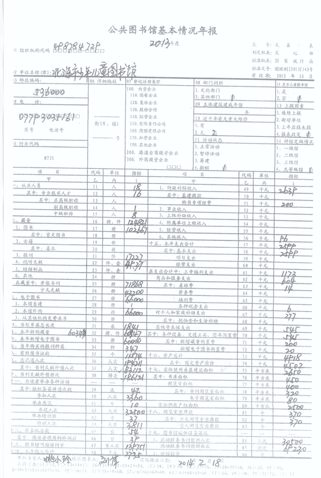 2013年公共图书馆基本情况年报