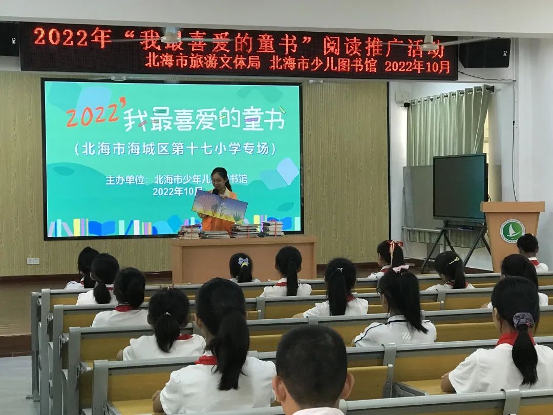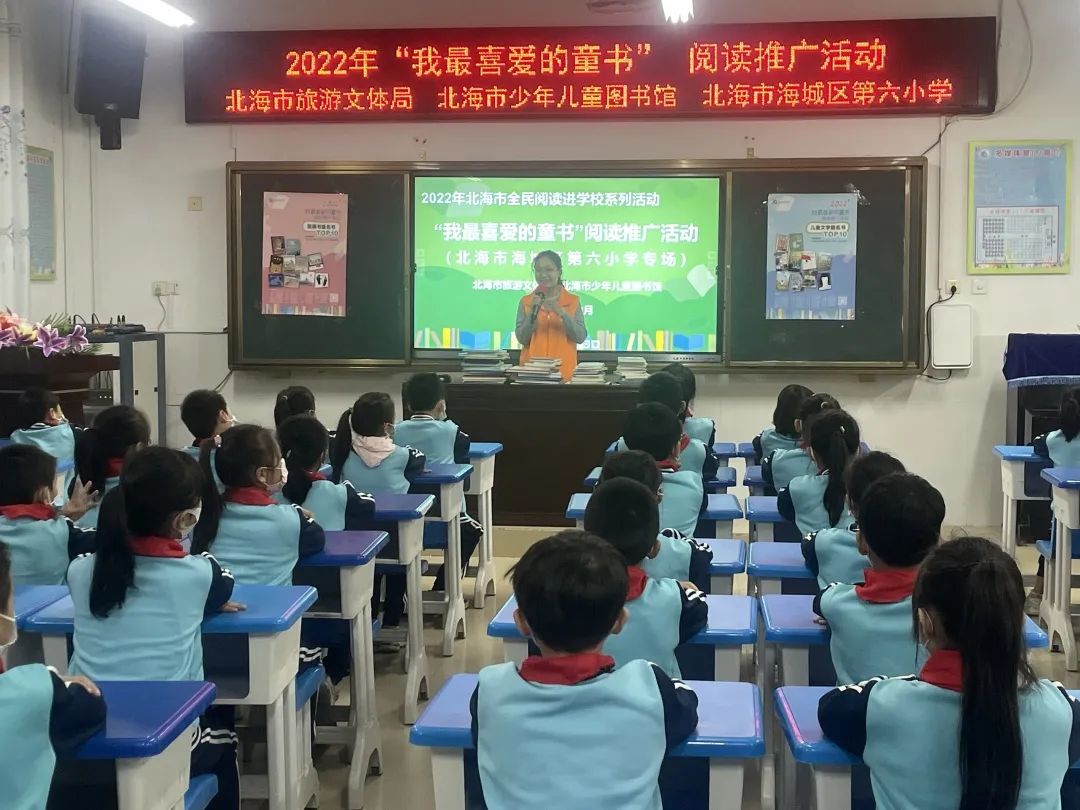为了推动少年儿童多读书、读好书,鼓励孩子们进行自主阅读和自我表达,北海市少儿图书馆联合全国三十余家图书馆在全市11所学校开展2022年我最喜爱的童书进校园阅读推广活动,让孩子们通过网络实名投票选出自己最喜爱的童书,让孩子成为童书阅读真正的主角。