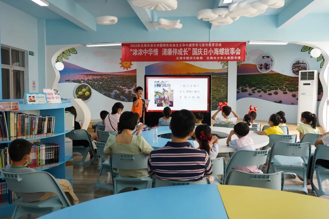 10月1日,是祖国母亲的第七十三个生日,为庆祝中华人民共和国成立73周年,北海市少年儿童图书馆在海丝路阅读馆开展“浓浓中华情 清廉伴成长”国庆日小海螺故事会,由馆员分享了绘本故事《杨门女将》,讲述北宋杨家四代名将忠勇尽责,杨门女将在佘老太君率领下保家卫国的感人故事。