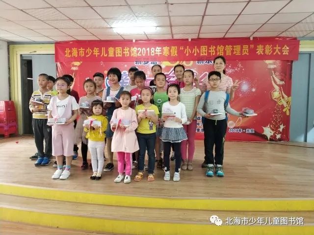 3月4日下午,北海市少儿图书馆2018年寒假“小小图书管理员”表彰大会在馆内多功能报告厅举行。32位图书管理员分别荣获“优秀小小图书管理员”、“优秀小小图书管理员之星”的荣誉称号,馆内相关工作人员、小图书管理员们和部分小图书管理员家长参加了大会。