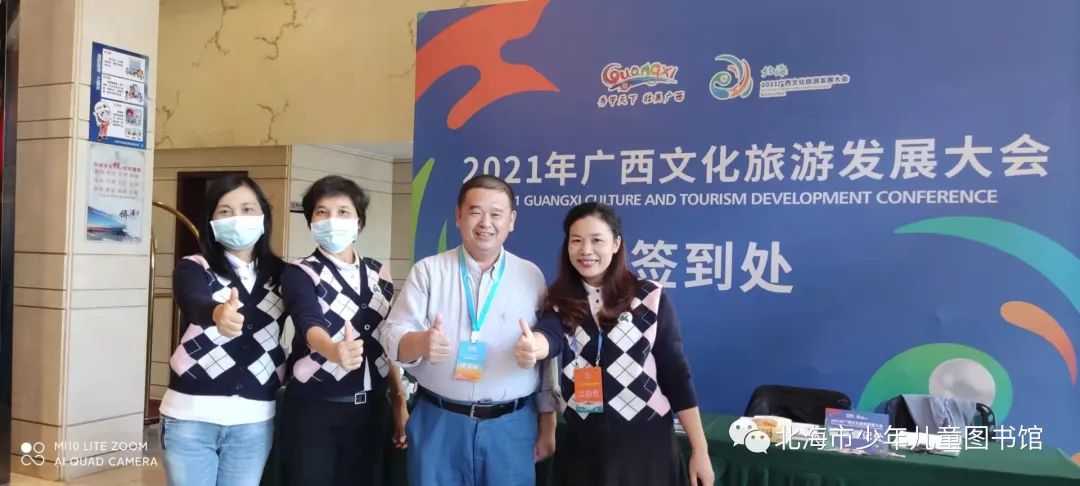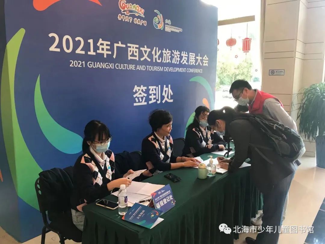 10月24日--26日,2021年广西文化旅游发展大会在北海召开,为配合做好2021年广西文化旅游发展大会相关工作,市少儿图书馆举全馆之力,以加强统筹、团结向上的工作态度,“时不分昼夜,事不分你我”工作作风,全身心投入本届文旅大会接待任务。