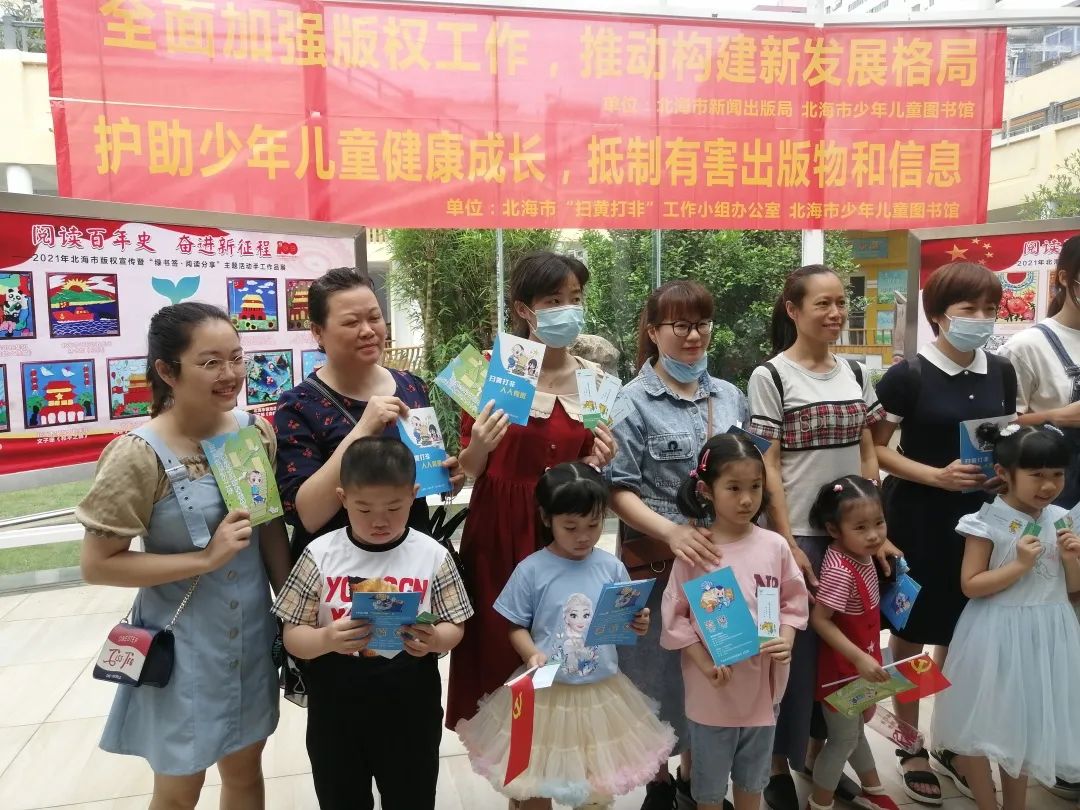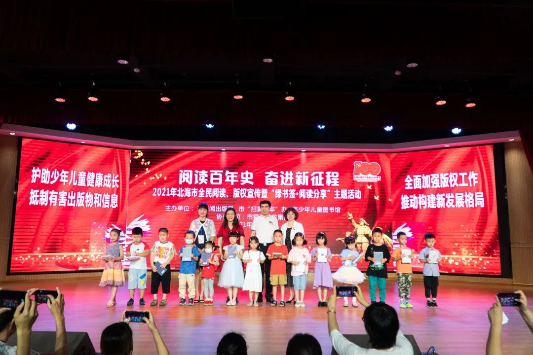 市委宣传部有关同志参加本次活动,并为优秀读者和参与2021年北海市“扫黄打非·我们共同的责任”绘画比赛、手工作品比赛的获奖选手颁奖。活动将“绿书签·阅读分享”活动融入全民阅读活动中,培养少年儿童养成良好阅读习惯,从小树立保护知识产权的意识。