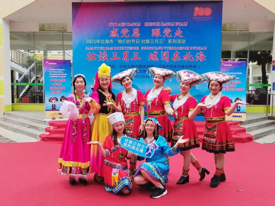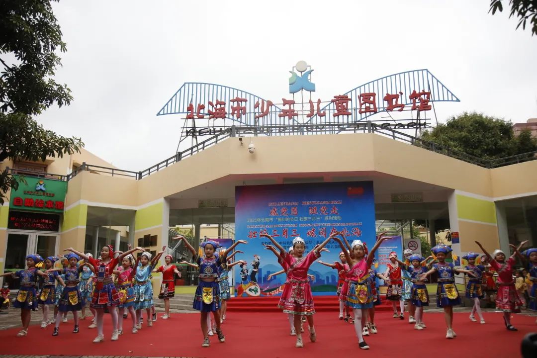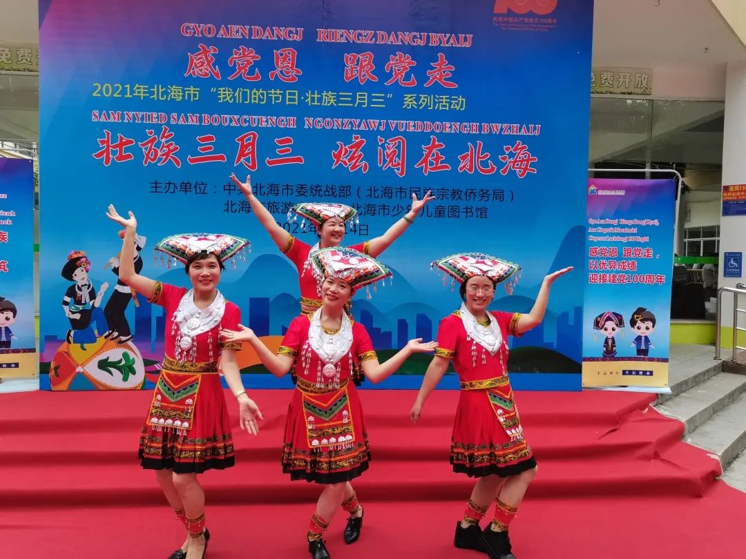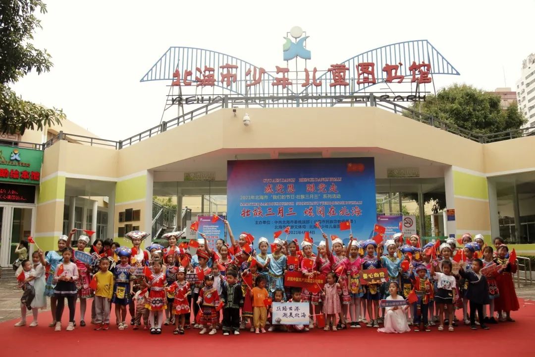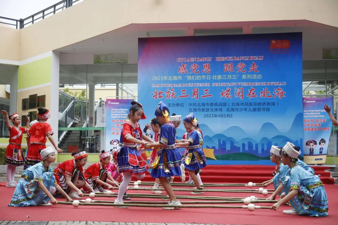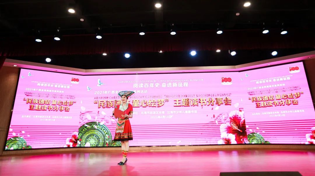 4月14日上午,近100名穿着少数民族服装的小朋友欢聚在市少儿图书馆,共同开展“壮族三月三 炫阅在北海”主题系列活动,感受壮族民俗文化、品味民族绘本、欣赏少儿原创绘画展。本次活动由中共北海市委统战部(北海市民族宗教侨务局)、北海市旅游文体局、北海市少年儿童图书馆共同举办。