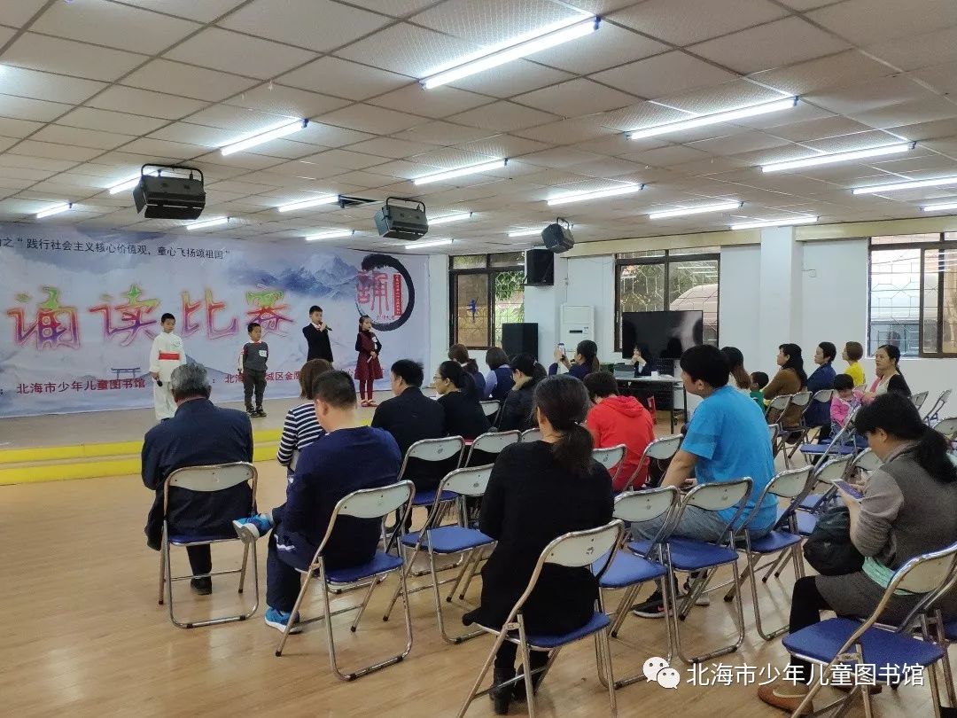 全民读书月系列活动之“践行社会主义核心价值观 童心飞扬颂祖国”诵读比赛于12月23日在北海市少年儿童图书馆多功能报告厅圆满结束,比赛持续三天,来自华夏口才的孩子们给少儿馆的读者们带来了精彩纷呈的朗诵表演,抑扬顿挫、饱含深情的朗诵钻进耳朵里,飘到心头上,让人不愿结束这段美妙的听觉之旅。