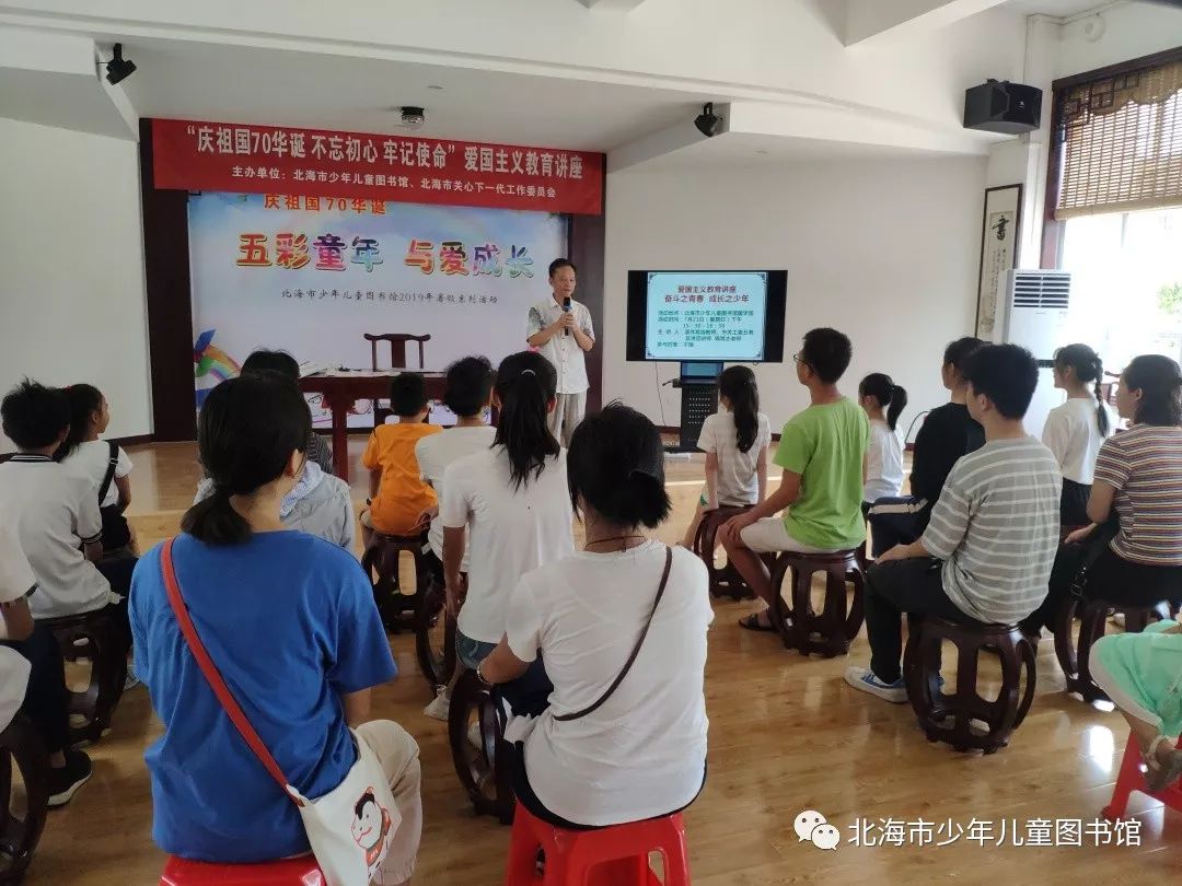 暑假期间,我馆分别邀请在琵琶领域有着深厚造诣的张静老师和笛子演奏家苏兆宁老师在二楼国学馆分别给我们带来了不一样的民族器乐公益讲堂及欣赏,邀请了市关工委五老宣讲团讲师陈其志老师和广西自治区关工委五老宣讲团讲师麦剑峰老师给我们带来爱国主义教育讲座……7月20日,馆内举办了一场约有200名读者参与的书法公益培训;8月25日,馆前空地上举办了一场较往年规模更大的北海市中小学生汉字书写大赛,吸引了约400位孩子参与,《北海日报》、北海电视台、《广西日报》报道了本次活动。