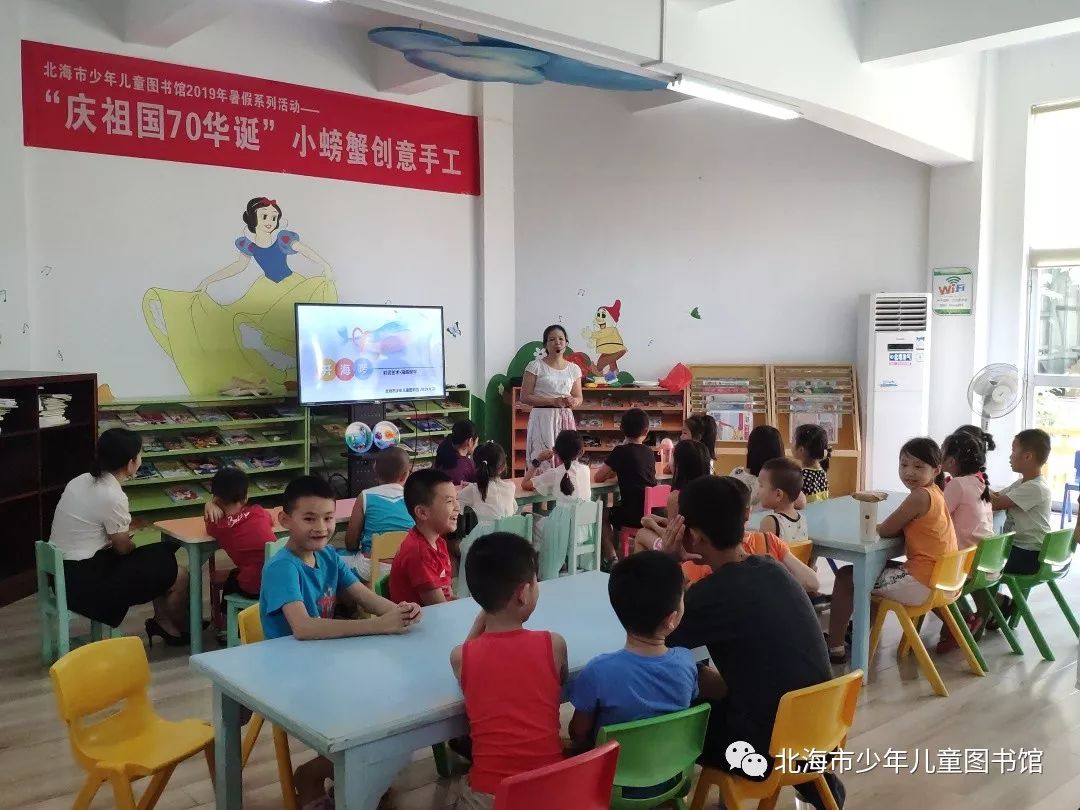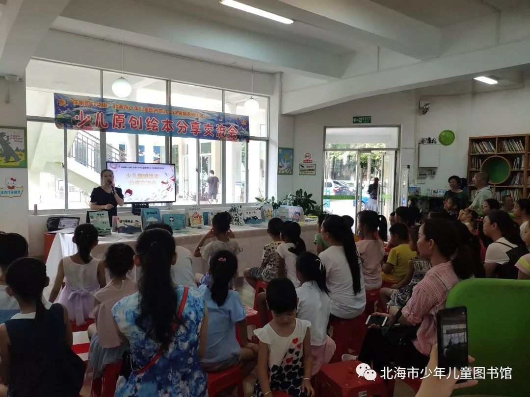说到读书会活动,暑期也少不了品牌活动“小海螺故事会”,馆内还举办了童话趣解《昆虫记》、《海螺的传说》亲子科普读书会、《疯狂的垃圾》亲子读书会、北海市少儿原创绘本分享交流会等。8月15日,少儿图书馆的党员代表和阅读推广人周莉老师来到茶亭路社区举办“书香社区 ‘阅’享成长”读书会活动,和孩子们一起“悦”读!