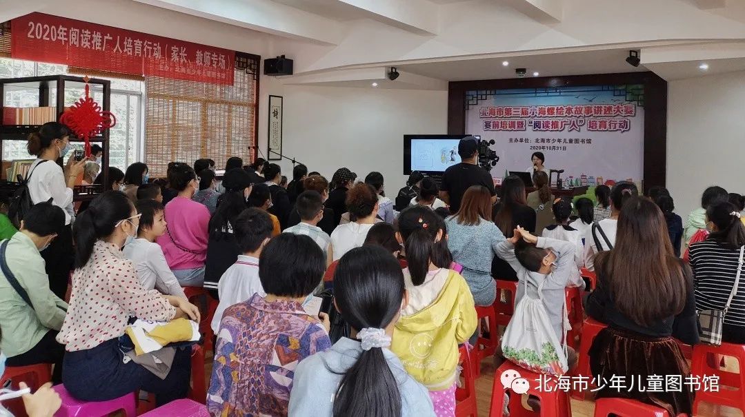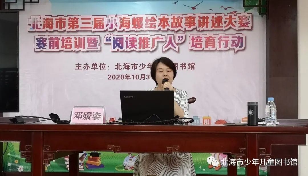 10月31日,北海市少年儿童图书馆在馆内举办了北海市第三届小海螺绘本故事讲述大赛赛前培训暨“阅读推广人”培育行动,邀请了深圳市首批官方认证阅读推广人、深圳市阅读推广人协会秘书长、深圳少儿图书馆阅读指导组成员邓媛姿老师给全市小读者、家长、老师们带来“奇妙无穷的图画书世界”讲座,讲座从《图书馆狮子》图画书故事展开,让现场的读者们沉浸在图画故事中,并亲身体会如何阅读、讲述绘本。
