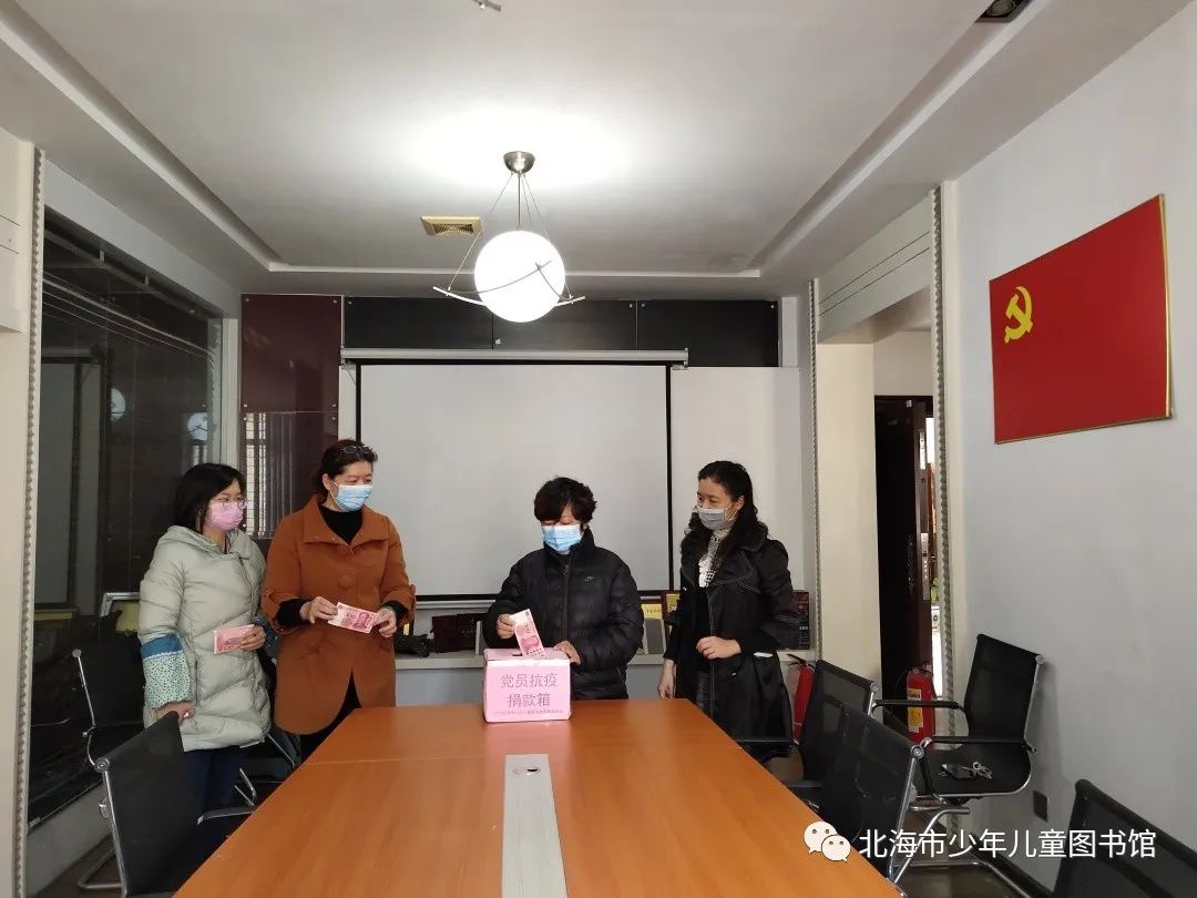 来到现场捐款的退休老党员表示:“作为一名党员,虽不能像医务人员一样奋战在疫情前线,但也想为共克时艰贡献一份自己的力量”。我馆党员一直关注疫情防控消息,为滞留在北海的湖北籍旅客送去文化礼包,为武汉市少年儿童图书馆寄去疫情防护急需用品……用实际行动践行共产党员的初心和使命,主动作为,传递党组织和党员的榜样力量,让党旗在疫情防控斗争中高高飘扬。
