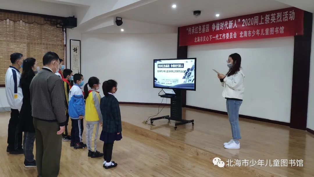 参与本次活动的有市关工委和市少儿图书馆领导、五老志愿者代表、小读者及家长代表等,通过在广西文明网上为英烈献花、敬礼、鞠躬,表达对革命先烈的敬仰,并深切缅怀北海市救火英雄骆春伟烈士、深切哀悼在抗击新冠肺炎疫情斗争中牺牲的烈士和逝世同胞。