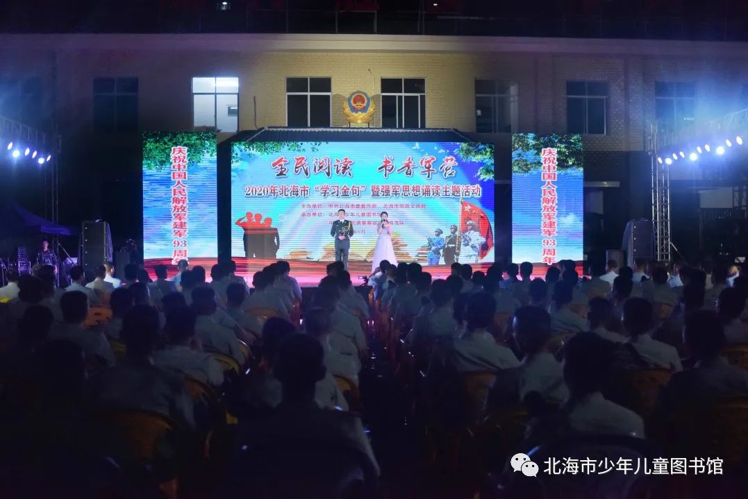 金句为引,诵读为声。8月6日晚,由市委宣传部、市旅游文体局主办,市少年儿童图书馆、武警北海支队承办的“全民阅读 书香军营” 2020年北海市“学习金句”暨强军思想主题诵读活动在武警北海支队机动中队营区举行。