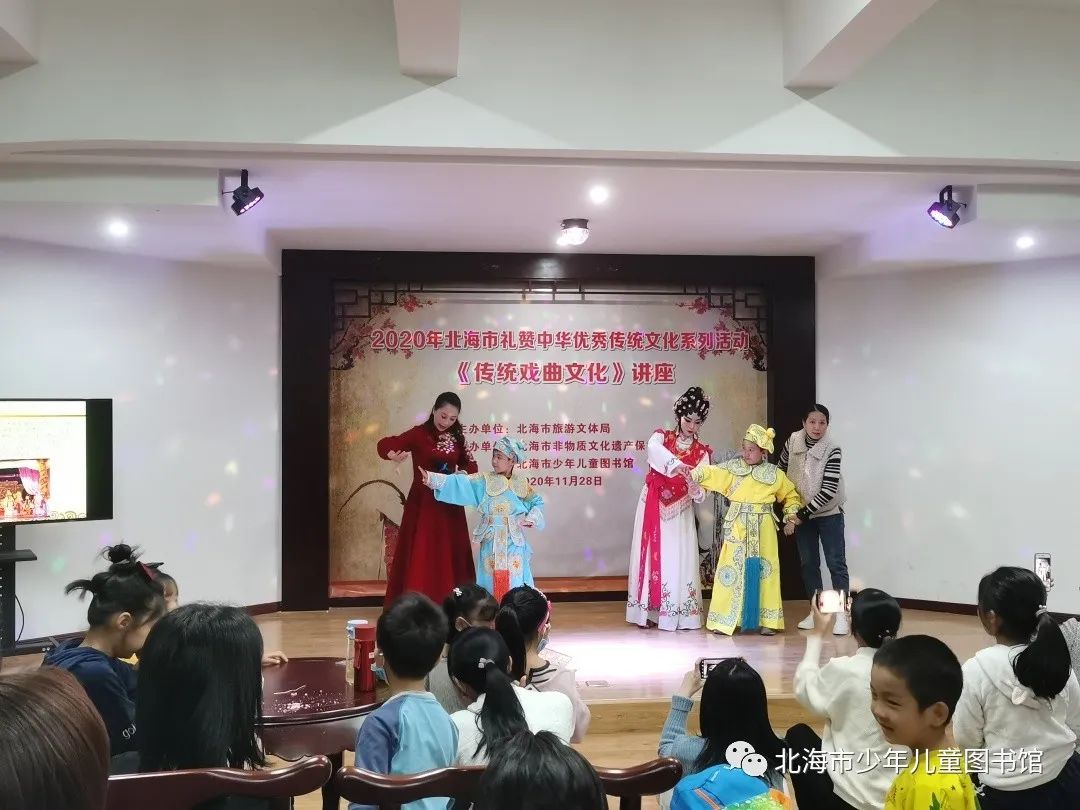 11月28日晚,一场由北海市旅游文体局主办,北海市非物质文化遗产保护中心和北海市少年儿童图书馆承办的《传统戏曲文化》讲座活动在市少儿图书馆古色古香的国学馆里顺利举办,共约60学生及家长参与本次活动,活动受到到场读者的热烈欢迎。