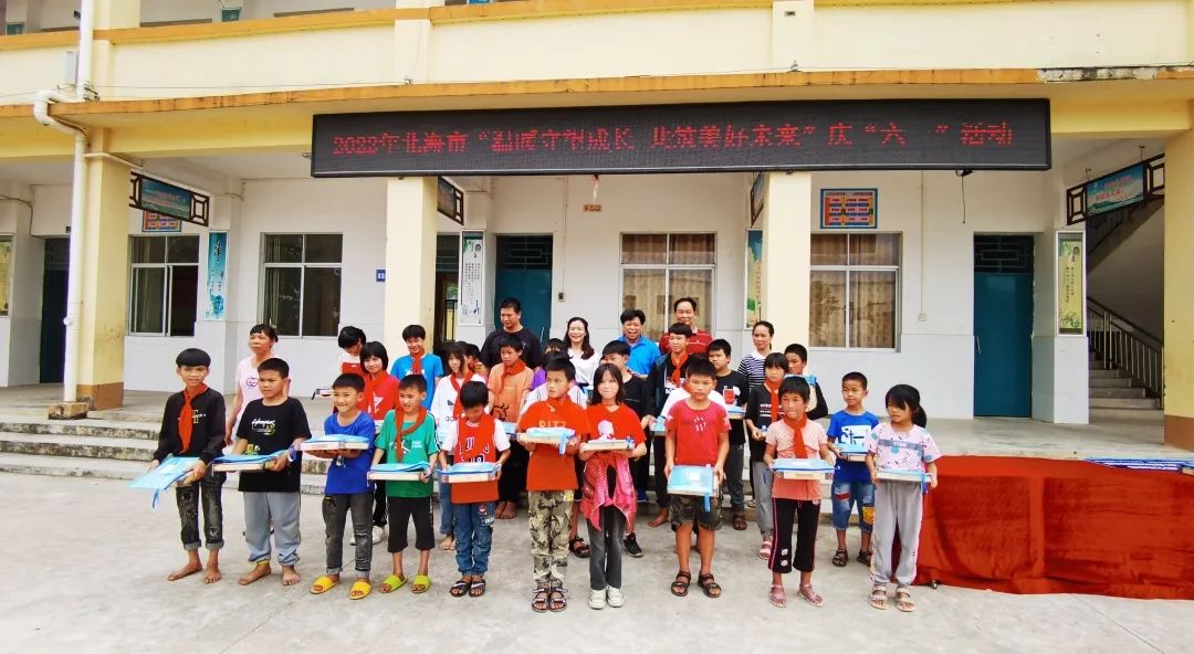关爱少儿成长,助力乡村振兴,5月19日上午,北海市委编办(绩效办)、北海市旅游文体局、北海市少年儿童图书馆联合在合浦县常乐镇平洋小学开展“温暖守望成长 共筑美好未来”庆“六一”活动。