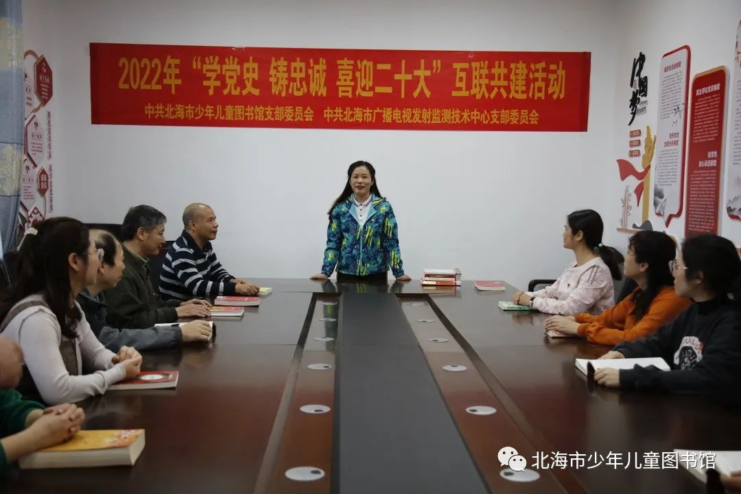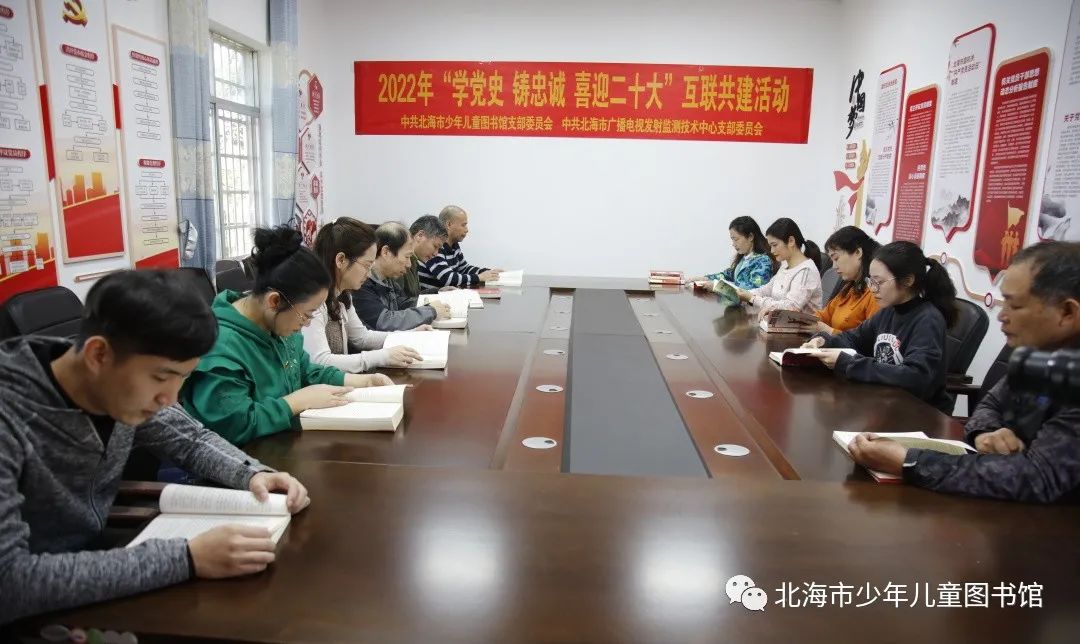 活动当天,中共北海市少年儿童图书馆支部委员会和中共北海市广播电视发射监测技术中心支部委员会共同开展了“学党史 铸忠诚 喜迎二十大”互联共建活动。