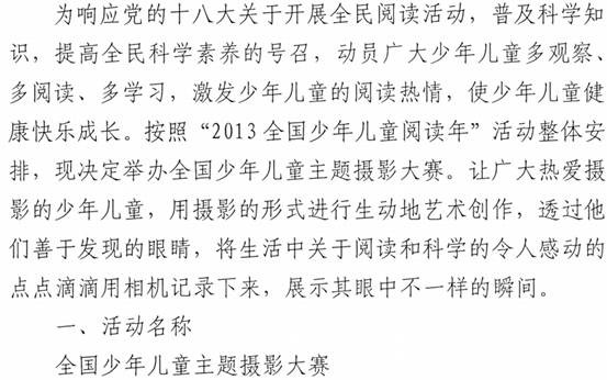 全国少年儿童主题摄影大赛通知