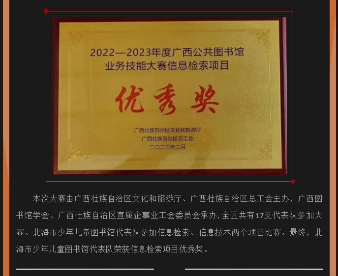 北海市少年儿童图书馆在2022-2023年度广西公共图书馆业务技能大赛喜获佳绩