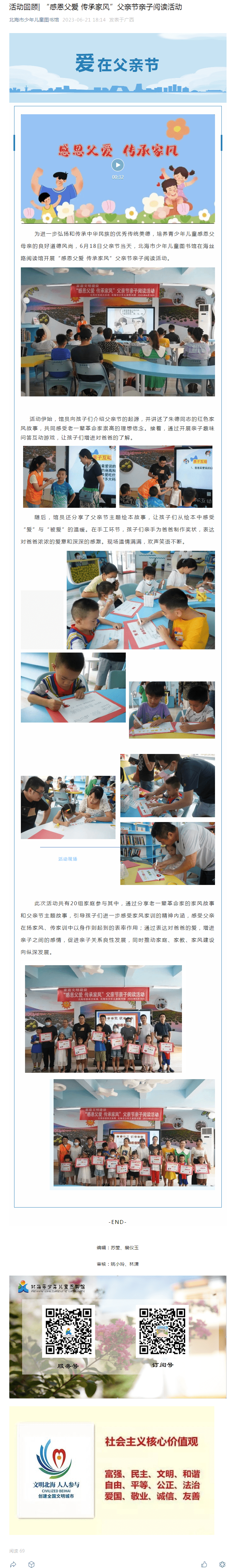 “感恩父爱 传承家风” 父亲节亲子阅读活动