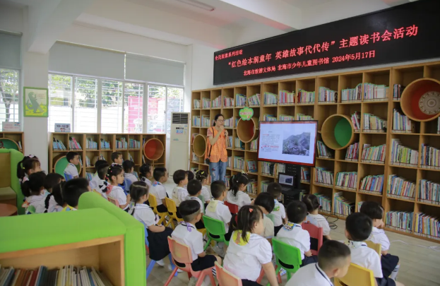 紧接着,“红色绘本润童年 英雄故事代代传”主题读书会活动在自助绘本馆举行。
