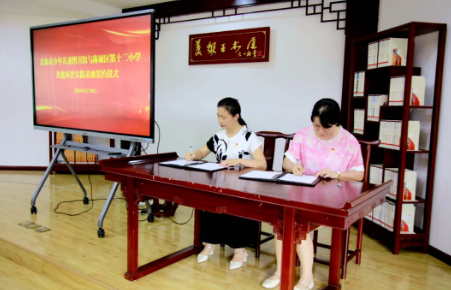 5月18日上午,北海市少年儿童图书馆联合北海市海城区第十二小学,在国学馆内举行共建科普实验基地签约仪式,北海市少年儿童图书馆馆长姚小玲与北海市海城区第十二小学戚晔校长参与此次签约仪式。