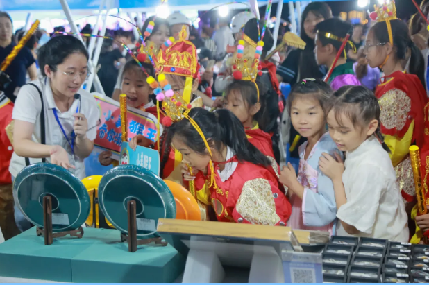 随后,馆员与小小美猴王们带领其他读者来到消费大夜市会场,馆员向读者们介绍夜市上展出的北海贝雕等非物质文化遗产相关的产品,感受非遗之美,更有许多北海特色的非遗文创产品,让读者们眼花缭乱,爱不释手。