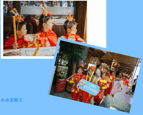 馆员将“弘扬丝路精神 讲好中国故事”《西游记》阅读分享会搬到活动现场,还组织孩子们身穿“斗战胜佛”战袍,个个化身“小小美猴王”围坐一桌,更有孩子扮成师徒四人,现场上演《西游记》,孩子们完全沉浸在西游历险的世界中。