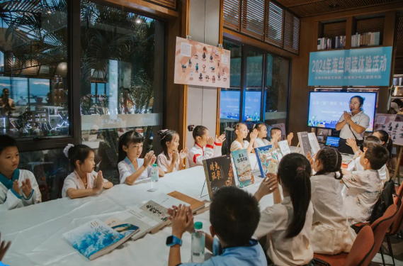活动中,少儿图书馆以多种形式开展故事分享会,向孩子们推荐优质图书。在读书会现场,孩子们围坐一桌,在馆员的带领下,走近海上丝绸之路,探寻丝路古港——北海,感悟海丝文化的魅力。