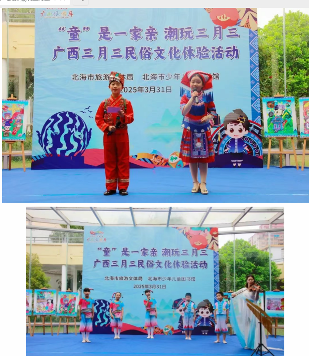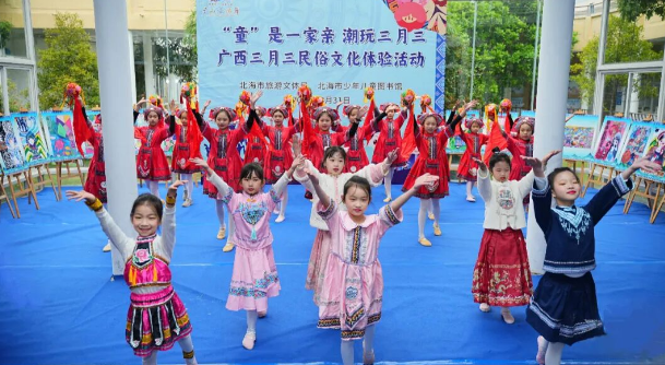 春潮涌动歌如海,八桂风情润童心。3月31日,北海市旅游文体局、市少年儿童图书馆以“‘童’是一家亲 潮玩三月三”为主题,开展了一场沉浸式“广西三月三”民俗文化体验活动。活动将非遗元素融入民俗体验中,让传统与现代碰撞出绚丽火花,吸引了数百组家庭共赴文化之约。
