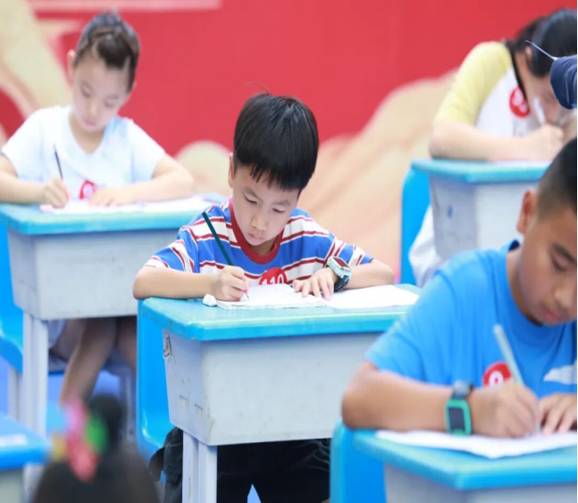 比赛现场秩序井然,墨香四溢。纸笺铺展,笔尖起落间沙沙作响,百名小选手凝神聚力,将对红色精神的崇敬、对汉字文化的热爱,化作笔下流淌的横竖撇捺,字字皆含赤诚,笔笔尽显认真。低年级选手字迹虽显稚嫩,但笔笔扎实,满是孩童的执着与热忱;高年级选手笔法娴熟,楷书的方正端庄、行书的洒脱飘逸一一呈现,将汉字之美与对红色精神的敬意融入笔墨。