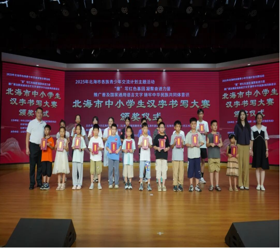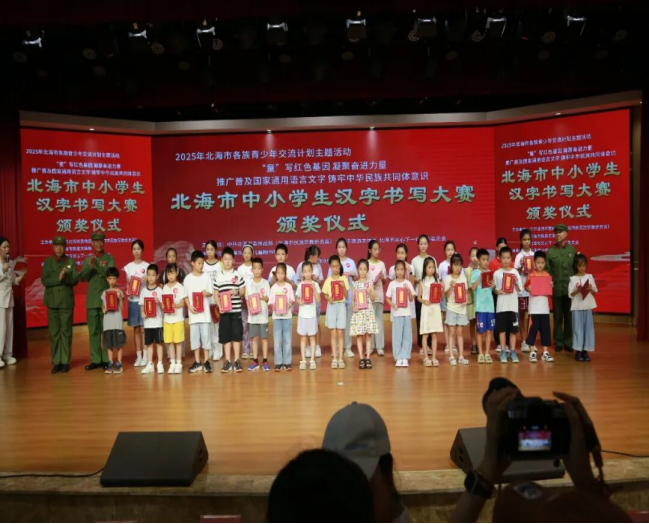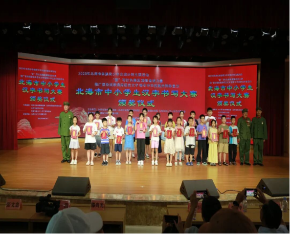 随后举行的颁奖典礼上,北海市旅游文体局四级调研员李继恒、北海市关心下一代工作委员会执行副主任李玉华、中共北海市委统战部民族工作科科长黄凡崇和6名老战士代表出席活动并为获奖选手颁发证书与奖品,鼓励选手们以比赛为契机,持续传承汉字文化、铭记红色历史,让中华优秀传统文化与红色基因代代相传。