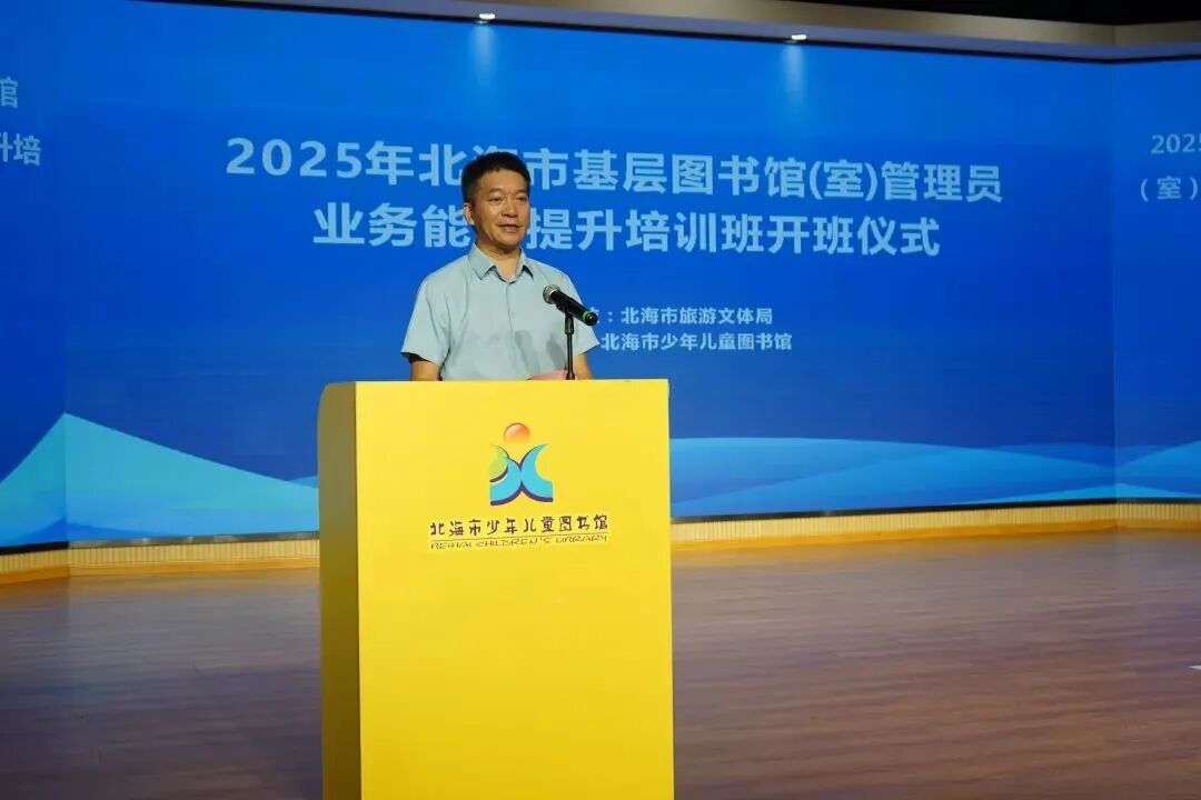 为进一步推动公共文化事业发展,提升基层图书馆(室)管理员的专业素养,拓展未成年人阅读服务的广度与深度,9月,由北海市旅游文体局主办、北海市少年儿童图书馆承办的2025年北海市基层图书馆(室)管理员业务能力提升培训班在北海市少年儿童图书馆多功能报告厅成功举办。市旅游文体局党组成员、副局长,市文物局局长(兼)韩云飞出席活动并致辞,他鼓励大家不断学习、创新服务,让阅读之光照亮更多孩子的成长之路。