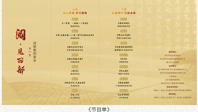 2024年10月26日19:30,“阅·见西部”第一季——“诗歌里的家乡”全民阅读推广活动将在眉山举办。